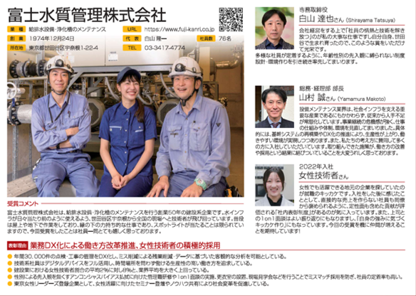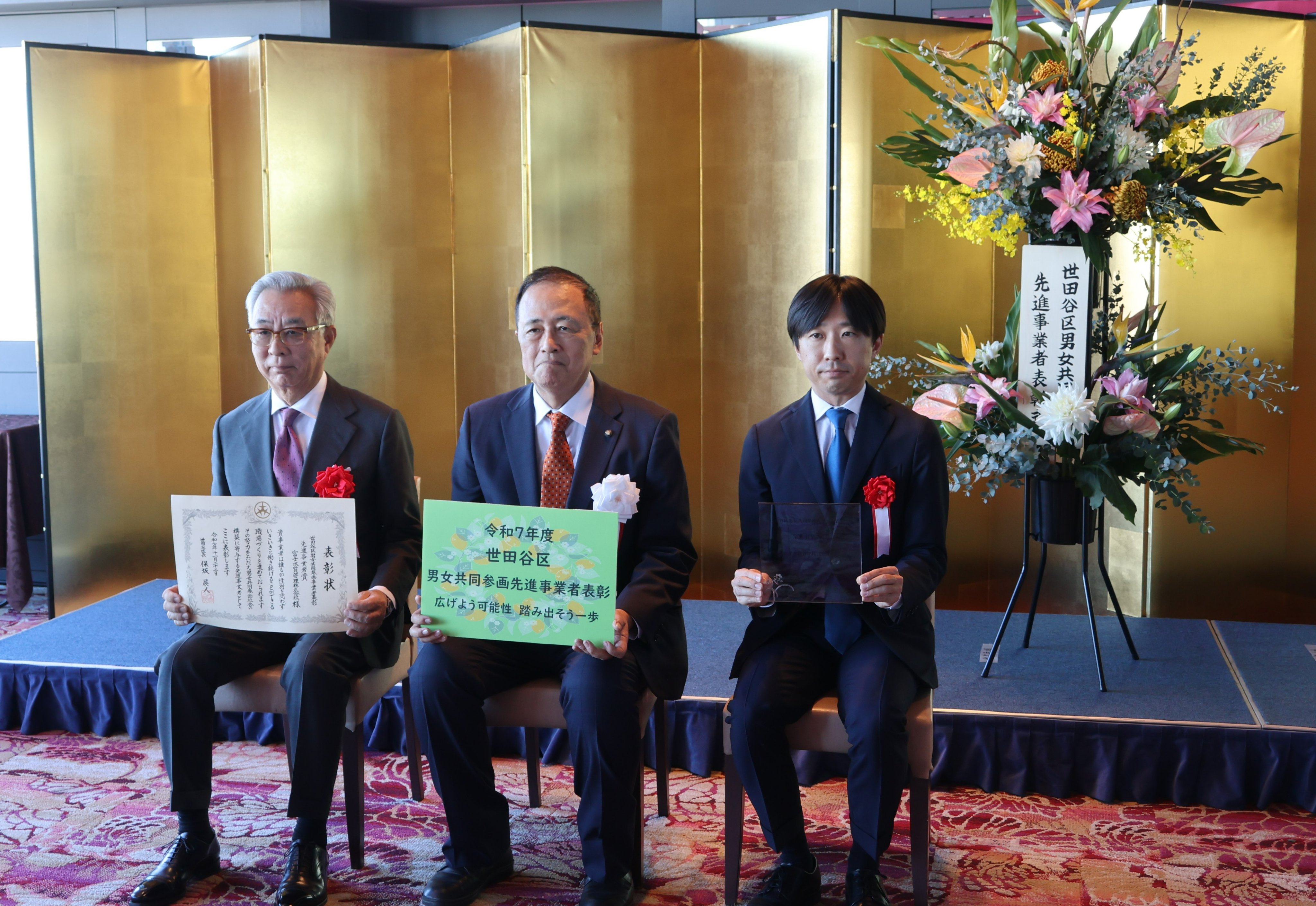 仕事と家庭生活との両立支援や、女性の活躍推進などに積極的に取り組んでいる事業者を表彰する「世田谷区 男女共同参画先進事業者」を受賞しました。今後も、性別を問わず、誰もがいきいきと働き続ける環境を整えることに尽力してまいります。