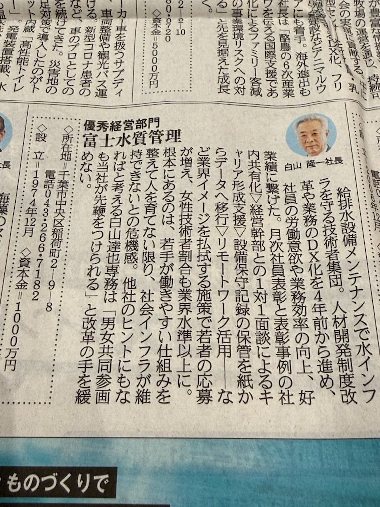 新技術、新製品開発、ユニーク経営などを通じ、活力溢れる経営で時代を先取りする中堅・中小およびベンチャー企業を広く表彰する「